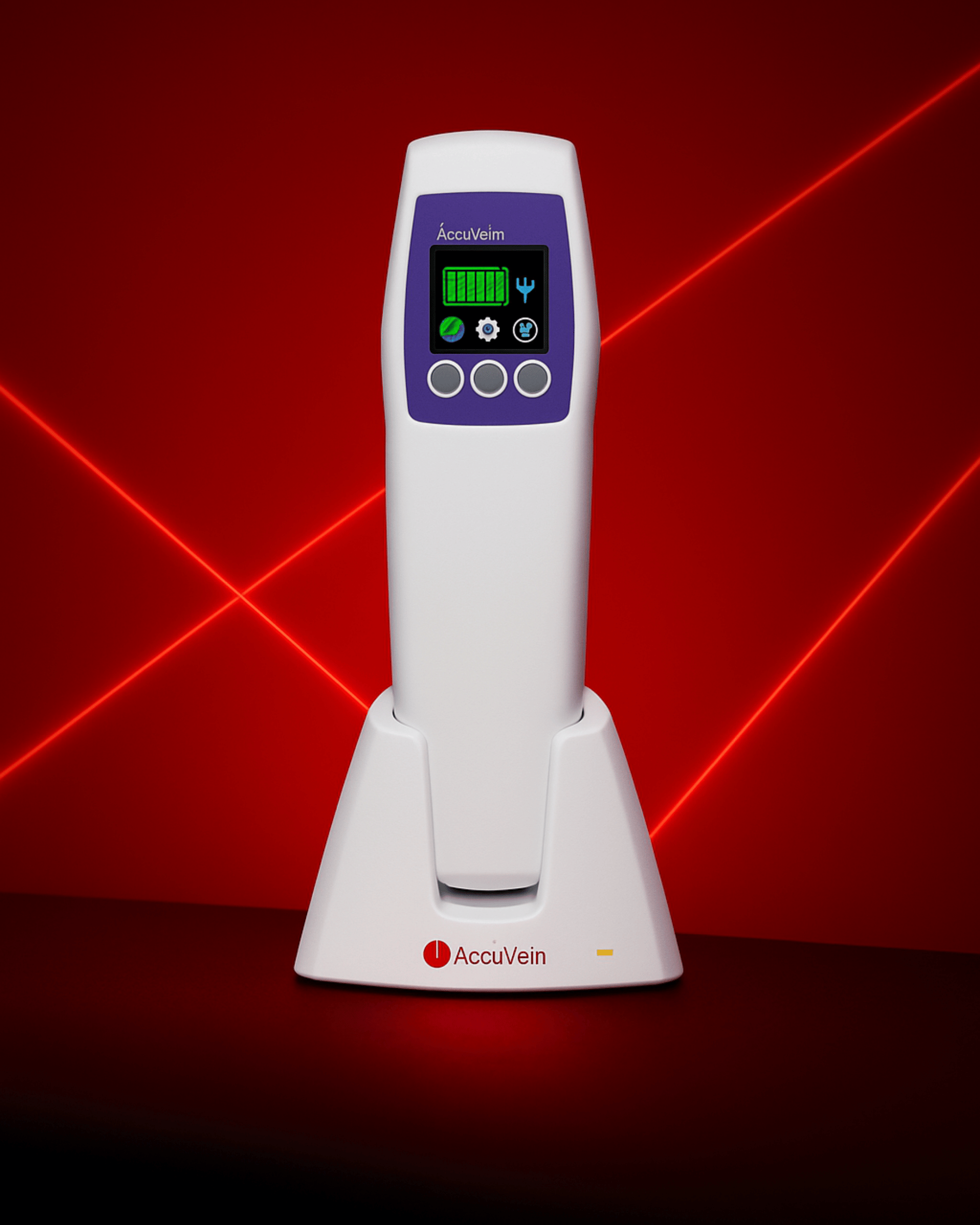 AccuVein uses near-infrared (NIR) vein illumination to project a live, precise map of superficial veins directly onto the skin, helping injectors avoid vessels and deliver treatments more safely.